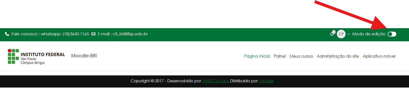 4) Para criar o conteúdo da disciplina, marque a opção "Modo de edição"