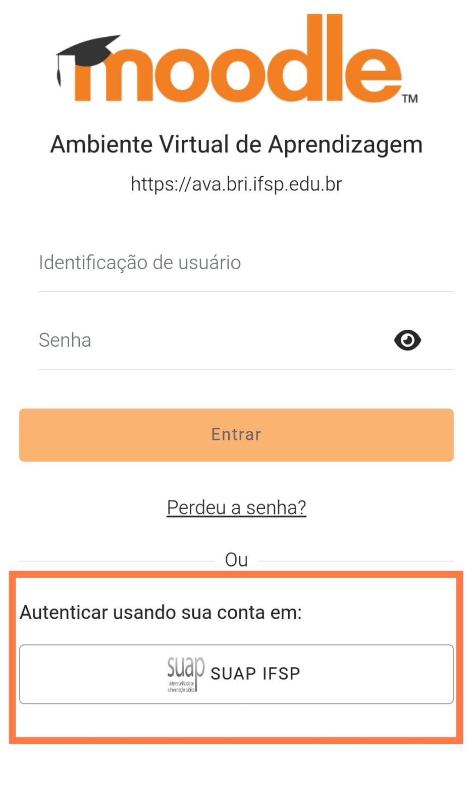 3) Faça o login , utilizando a Conta SUAP IFSP