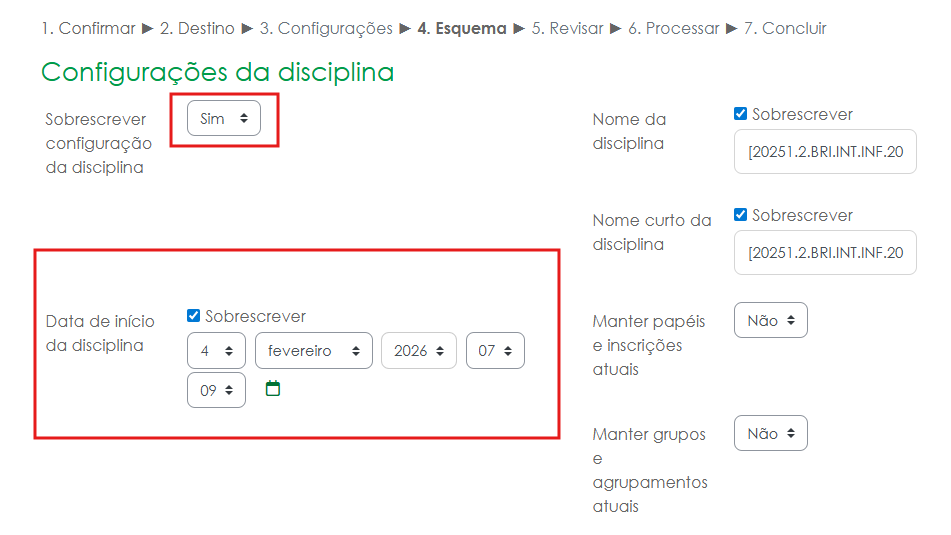 12) Na tela de Esquema, você poderá alterar as configurações listadas, como por exemplo a data de início do curso. Em seguida clique em Próximo