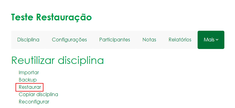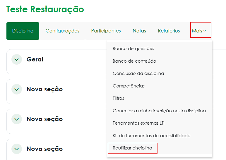 2) Clique na opção Mais e depois em Reutilizar disciplina.