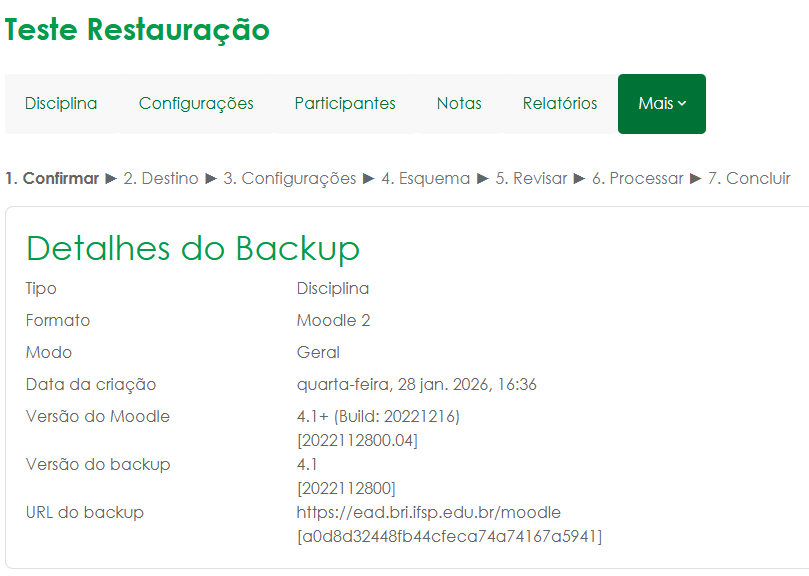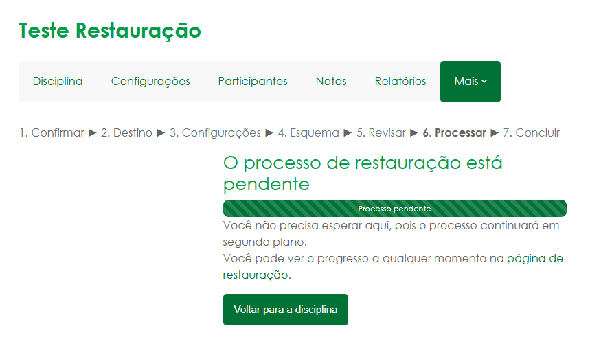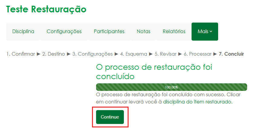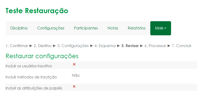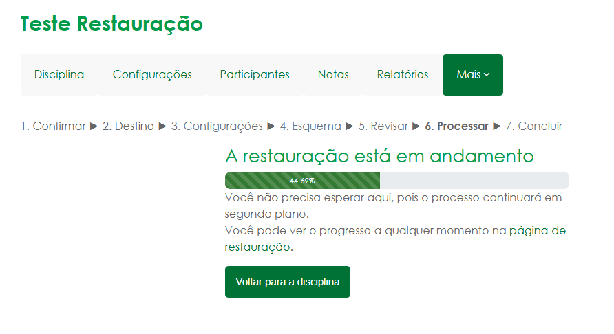 Mesclar os conteúdo do backup com esta disciplina: CASO TENHA ALGUM CONTEÚDO NA DISCIPLINA, ESCOLHENDO ESSA OPÇÃO O CONTEÚDO DO BACKUP SERÁ MESCLADO.