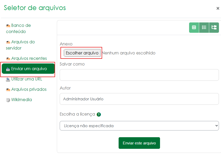 7) Seu arquivo vai ser listado ao lado do botão "Escolher arquivo". Agora clique em Enviar este Arquivo