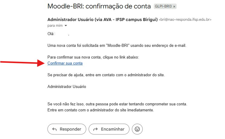 Clique em Confirmar sua conta