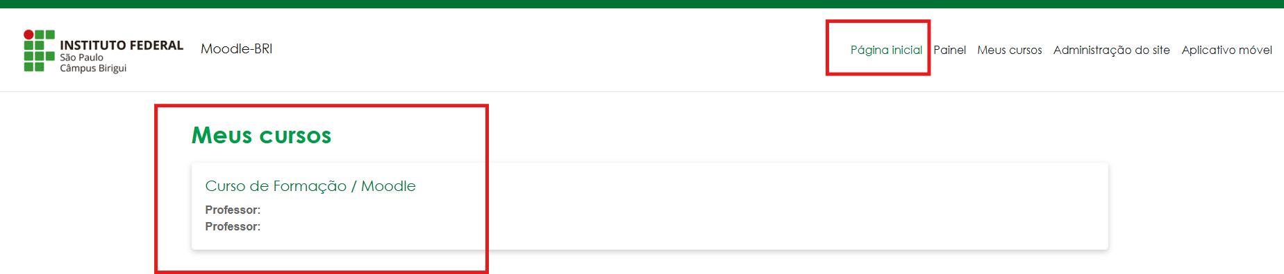8) Para ter acesso aos cursos, clique na opção Página Inicial.