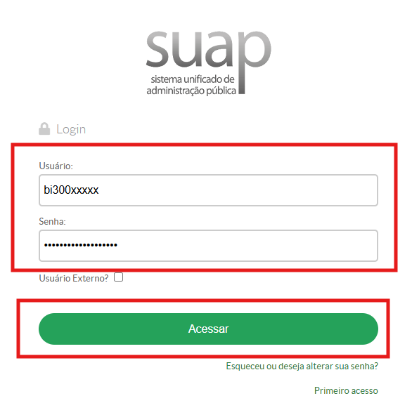 3)Digite suas credenciais do SUAP